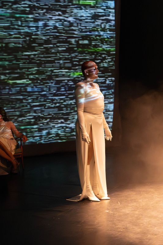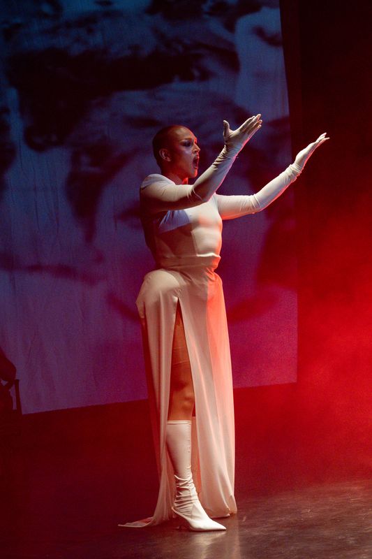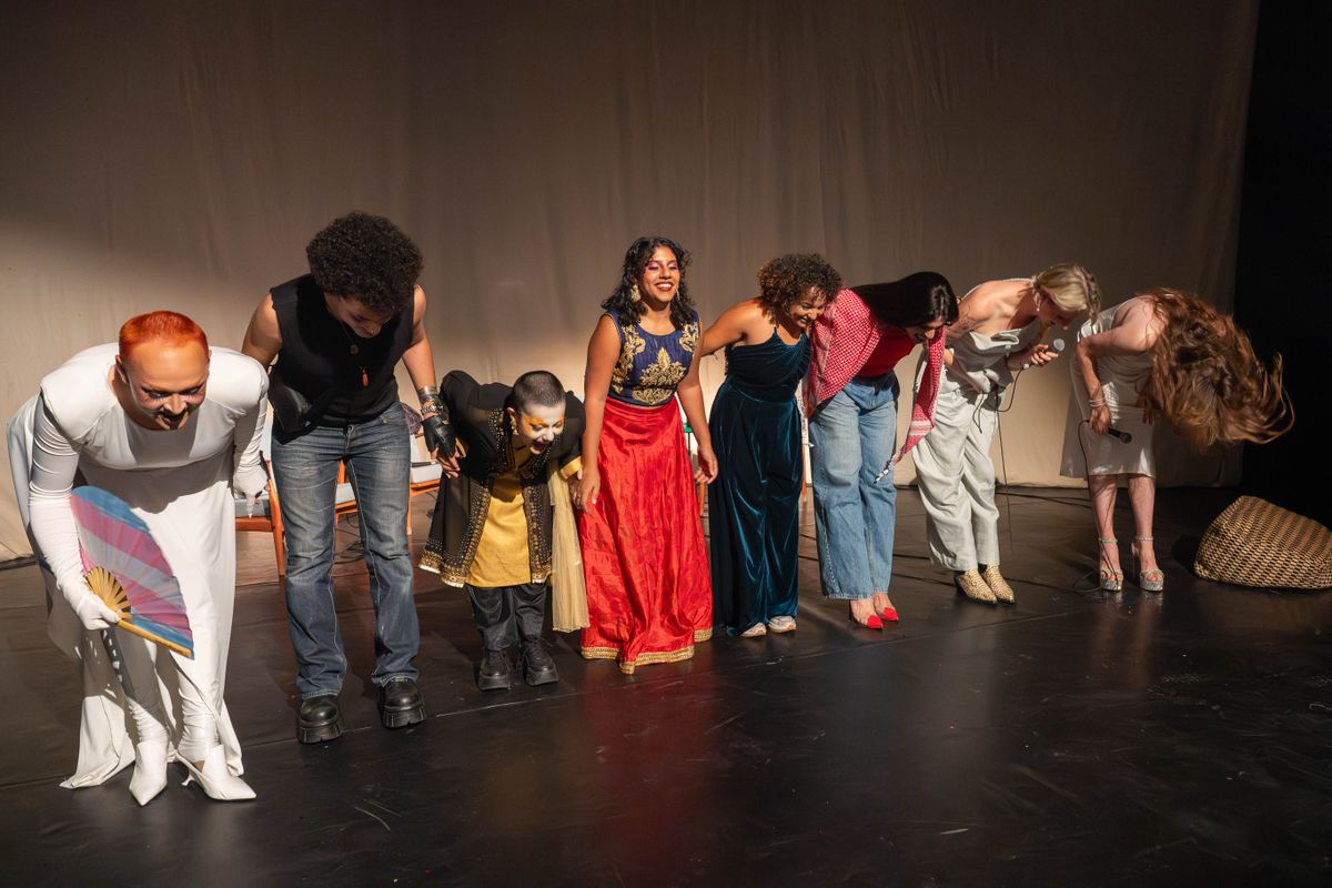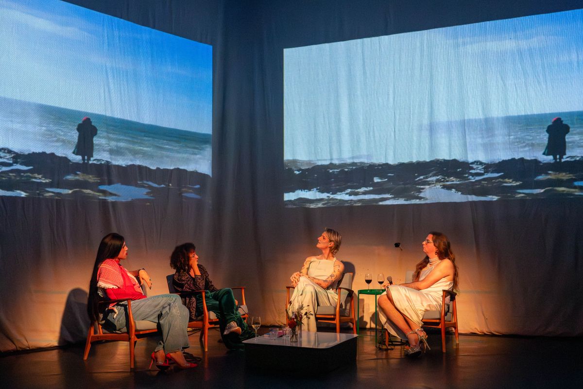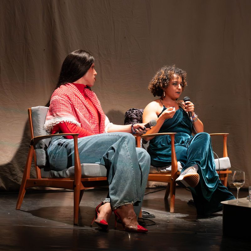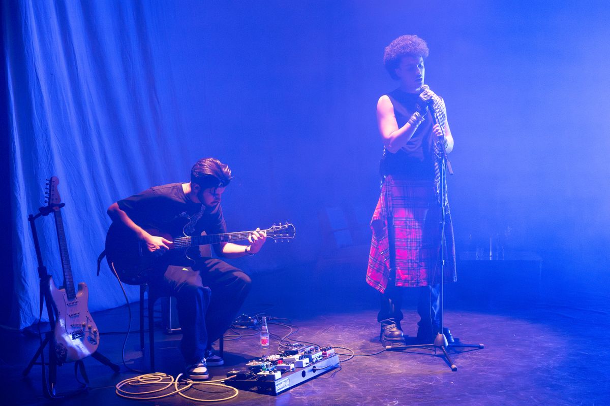 Meer dan een paar spots, vier mooie zeteltjes en even veel microfoons waren niet nodig om het podium van Antigone te verbouwen tot de set van een talkshow. We waanden ons Ellen De Genderless en Gender Verhulst, voor minstens één avond uw hosts van een mogelijke toekomst. We gingen als bakvissen met elkaar op speeddate en verwelkomden met open armen en volle glazen onze gasten op het podium. De oprechte en broze gesprekken met Hausvrau en Oumaima werden afgewisseld door artistieke interventies die niemand onberoerd lieten.