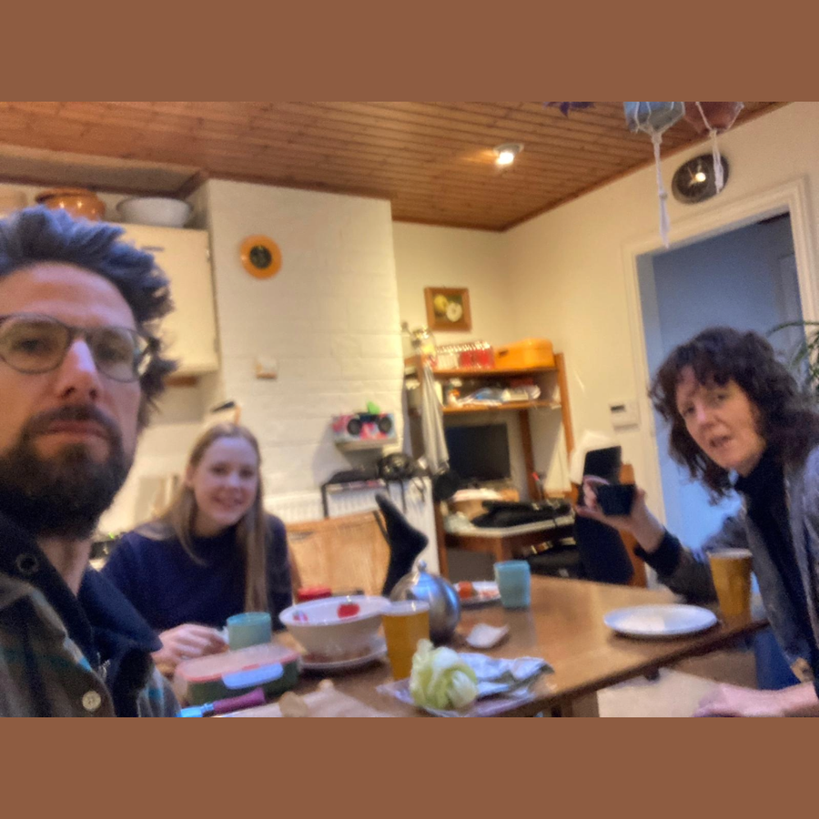 Middagpauze. Tijd voor een lunch in het NEXT café samen met Virgile van het NEXTfestival en Bram & Mahtilde van kunstencentrum BUDA.