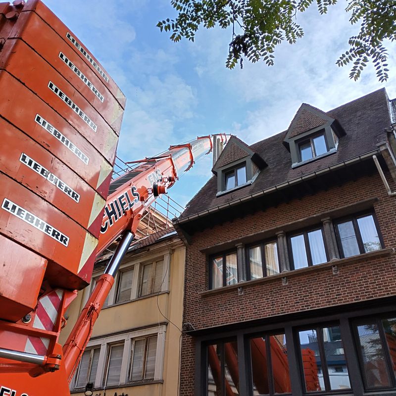 Plaatsen van de torenkraan + start afbraakwerken