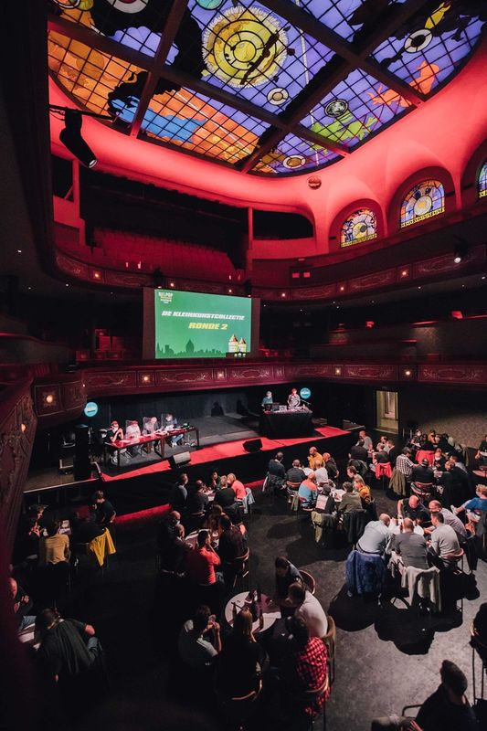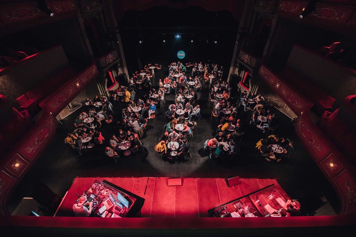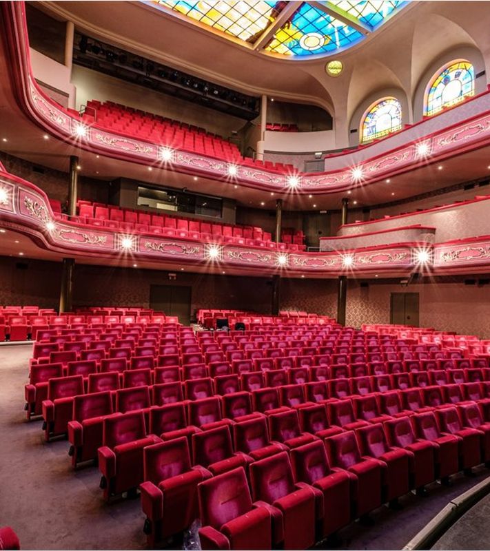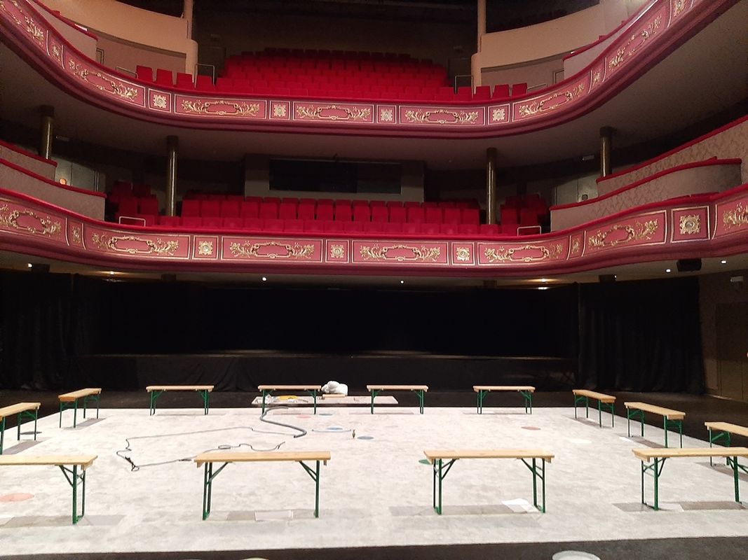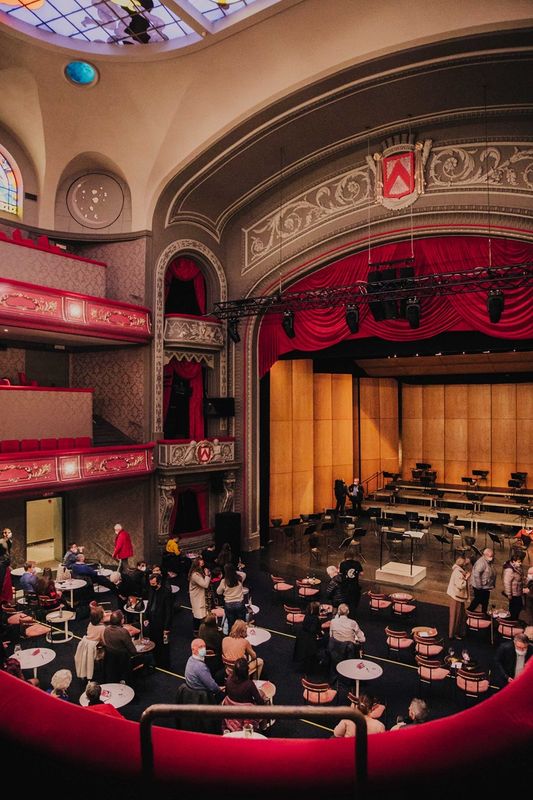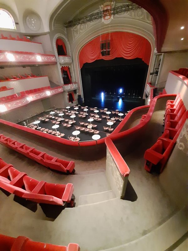 Er is ook een vlakke vloersetting mogelijk waardoor de capaciteit naar 1000 personen kan worden opgetrokken. Van de 1000 plaatsen zijn er 600 staand (parterre) en 400 zitplaatsen (balkons). Deze setting is enkel mogelijk binnen bepaalde vastgelegde momenten. Interesse? Informeer via zaalhuur.schouwburg@kortrijk.be