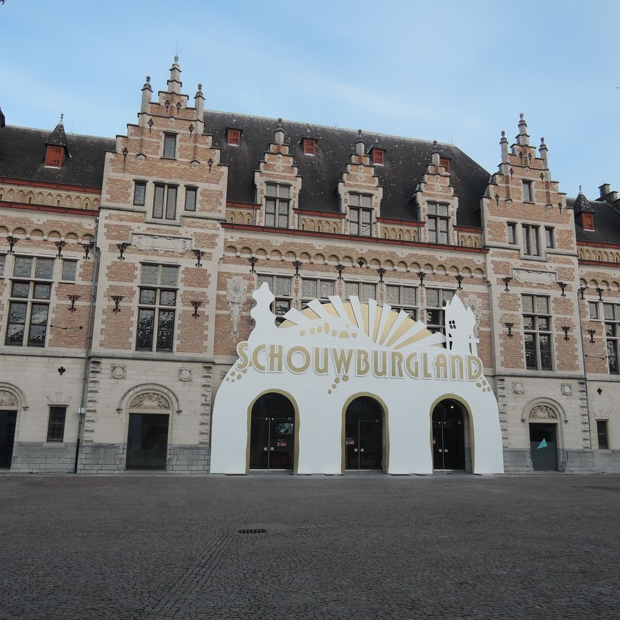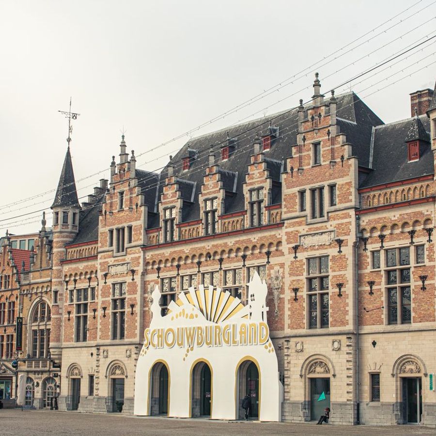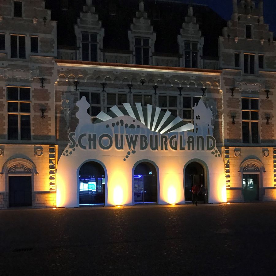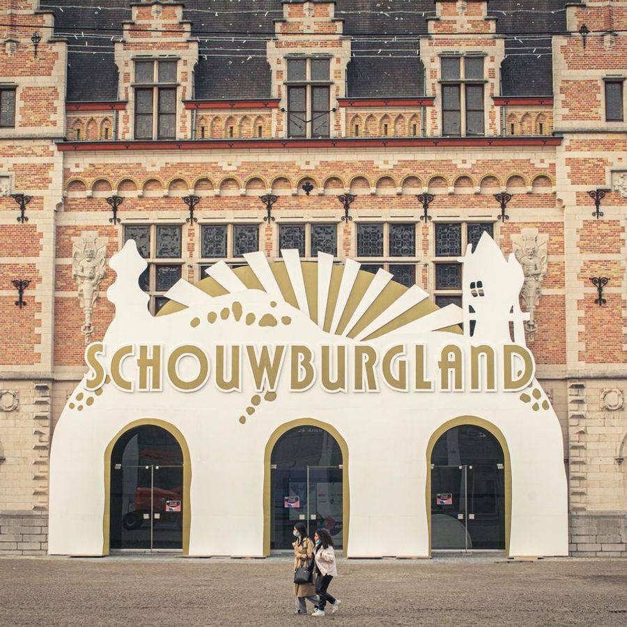 Voor Schouwburg Kortrijk zie je momenteel een feestelijke nieuwe gevel. Dit is het eerste decorstuk van 'Schouwburgland'. Het ontwerp is van Giovani Vanhoenacker en de broers Desmet. Samen met de artistieke ploeg beslist Schouwburg Kortrijk om dit nu al te tonen aan Kortrijk: het is niet alleen esthetisch maar het wordt 's avonds ook extra verlicht. Daarnaast is het een teaser voor het project 'om jullie goesting te doen krijgen in een waanzinnig avontuur. Schouwburgland houdt het midden tussen een pretparkattractie en een theaterwandeling en dat zie je meteen aan deze ingang.'