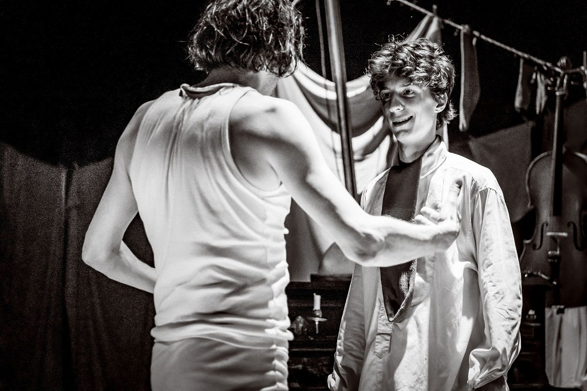 Pepijn: We zien ook veel kanten van elkaar die we voordien niet zagen. Ook het spelen met elkaar is een heel andere manier om met elkaar om te gaan. We herontdekken elkaar als mens, maar ook als speler én als personages op het podium.