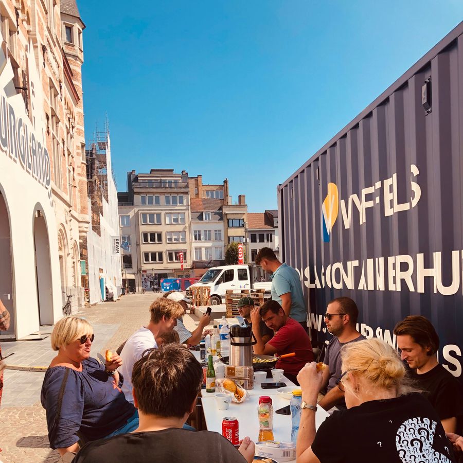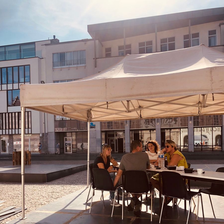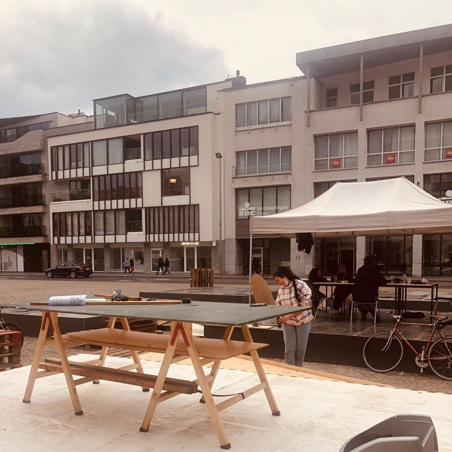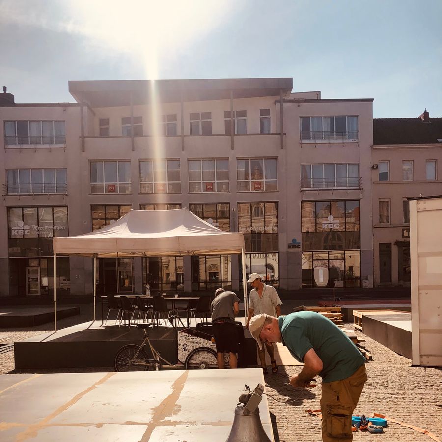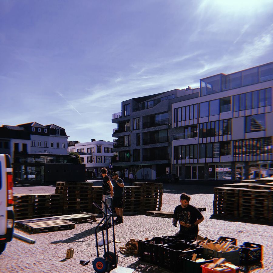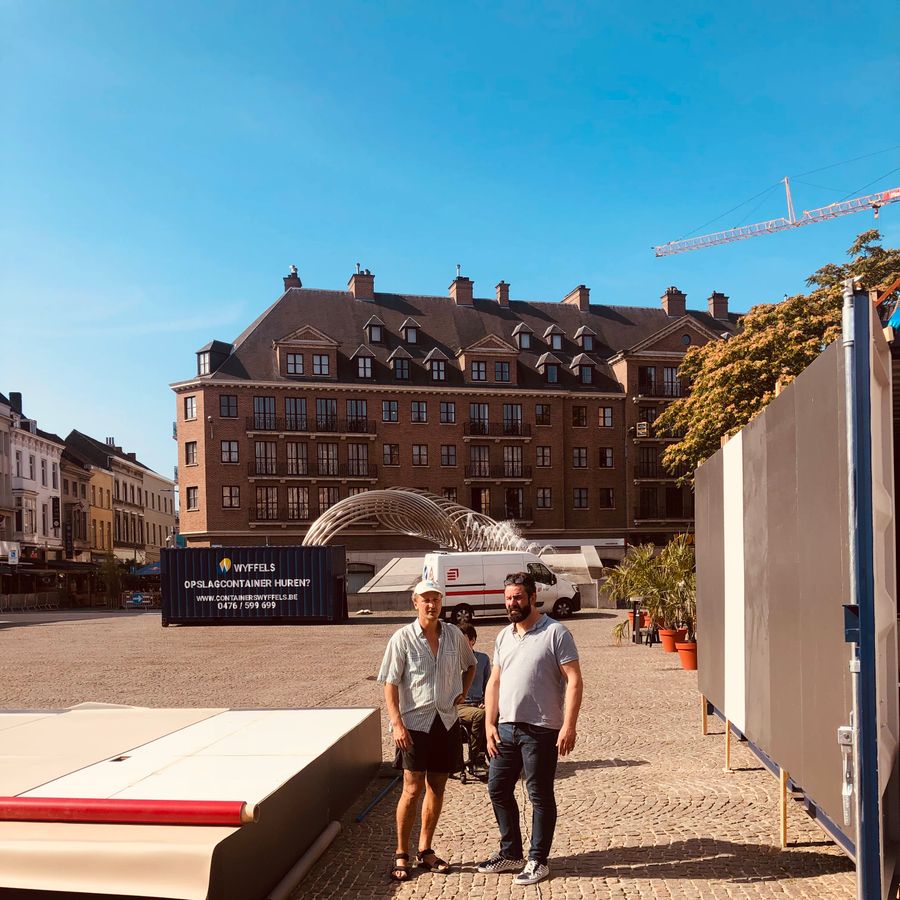 Maandag 23 augustus streken Niels Coppens en Roman Lutherbacher van Leefwerk alvast neer op ons Schouwburgplein. Met de hulp van verschillende vrijwilligers en vooral vzw Ak’tractie beginnen ze er aan de basis. Maar liefst acht weken lang (tot midden oktober) palmen ze het Schouwburgplein in.