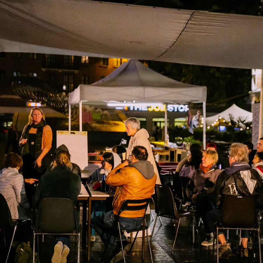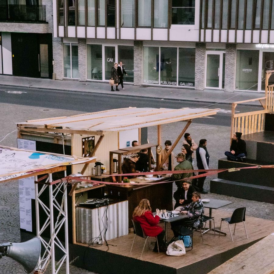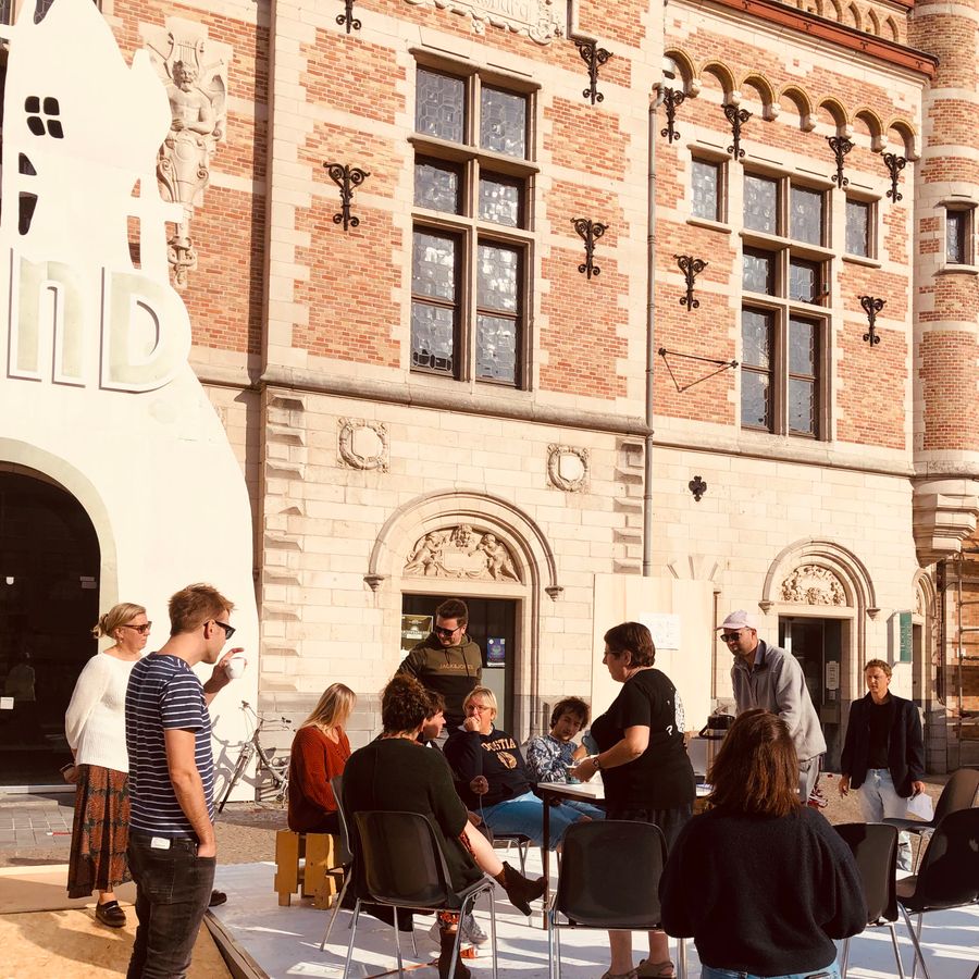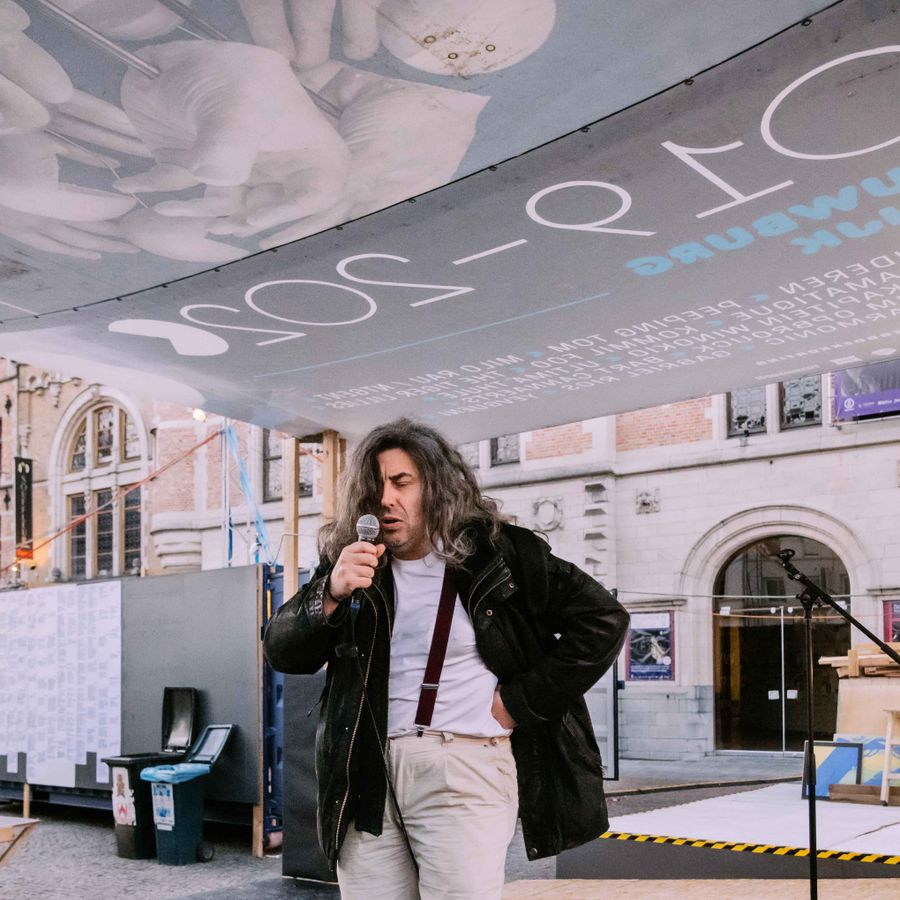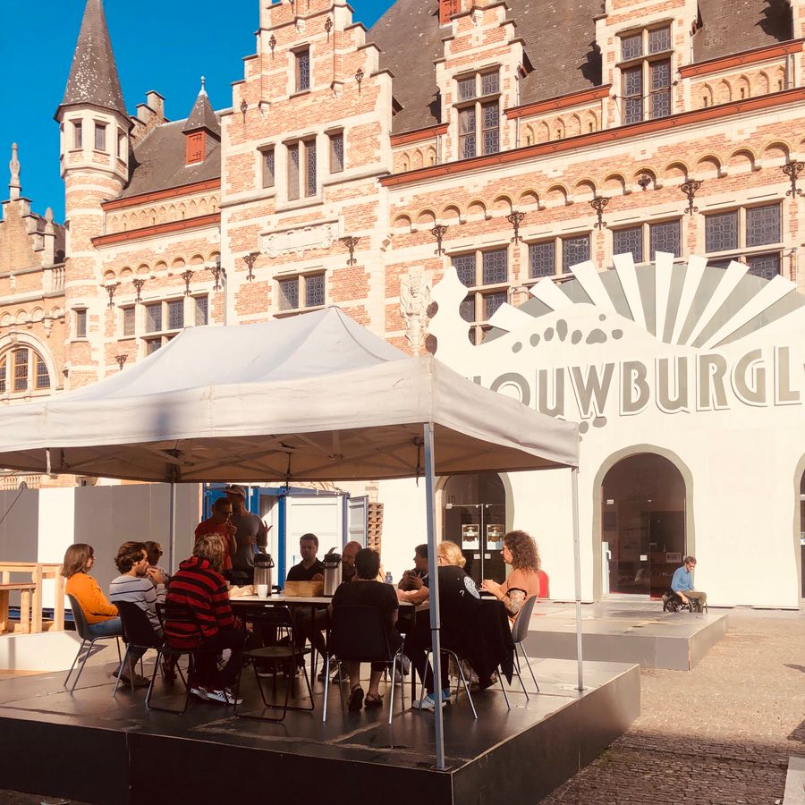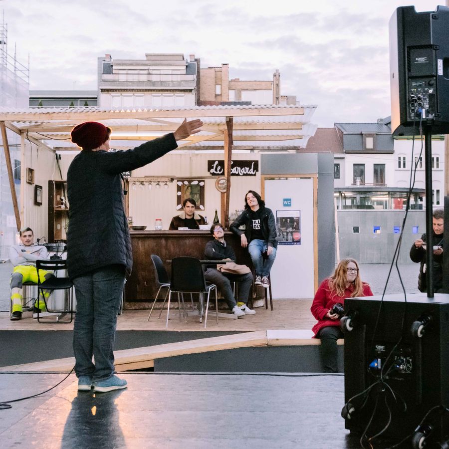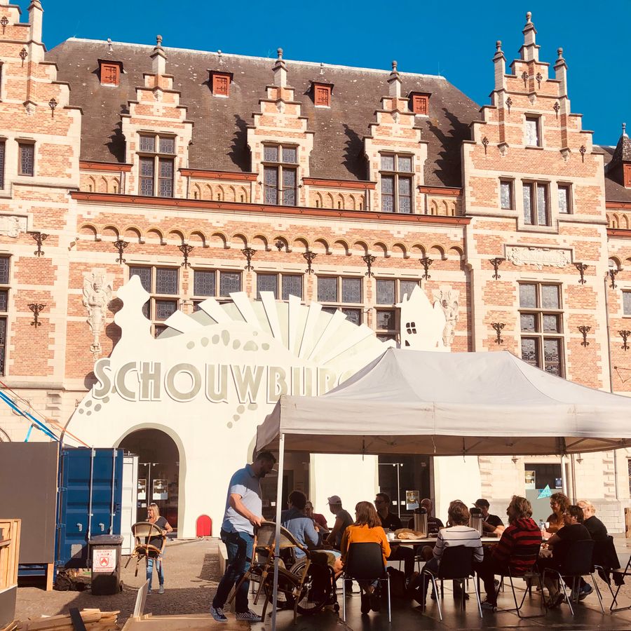 Het Schouwburgteam stuurde in het kader van 100 jaar Schouwburg Kortrijk een open call uit naar kunstenaarscollectieven: hoe het Schouwburgplein tot leven laten komen? Hoe kunnen we ons gebouw en onze werking meer openstellen? Hoe de inwoners van Kortrijk betrekken?