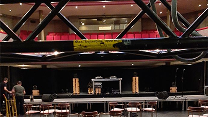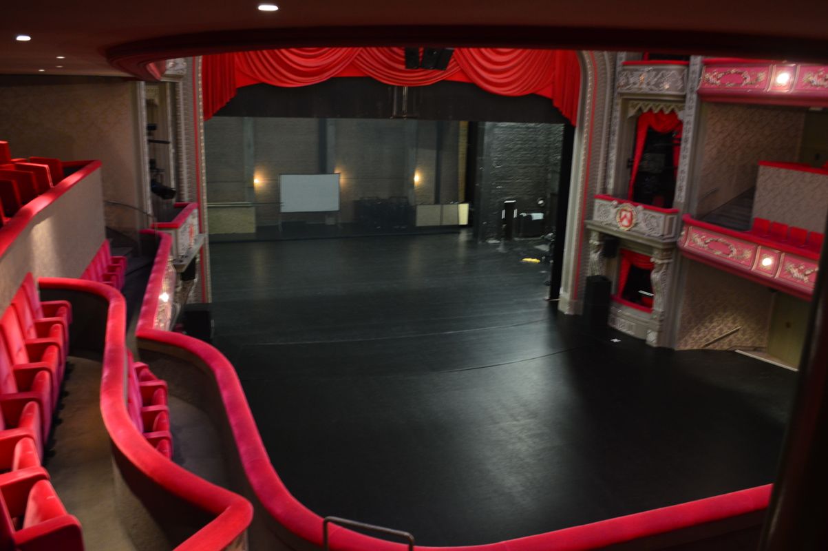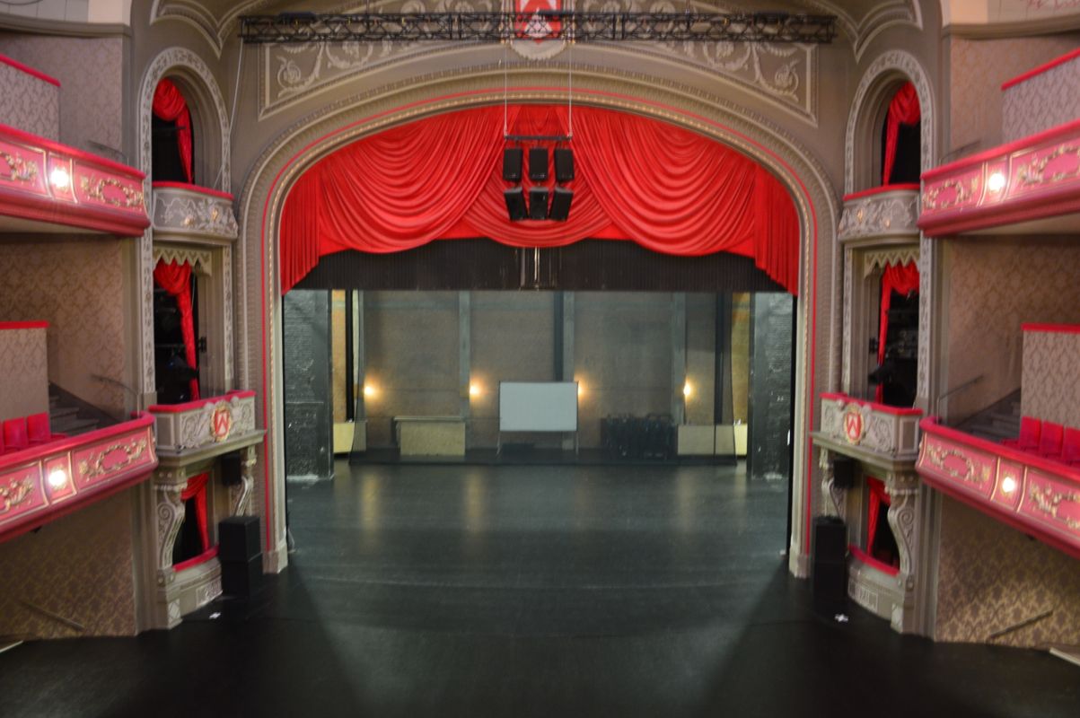 De stoeltjes (van de parterre) werden zorgvuldig uitgehaald en gestockeerd in onze kelder en de volledige Schouwburgvloer werd door middel van stellingen en planken omgetoverd tot een vlakke balzaal.
