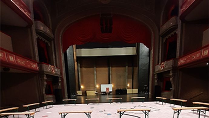 De metamorfose naar een balzaal met een volledig vlakke vloer had niet alleen als voordeel dat we onze bezoekers volledig coronaproof en per bubbel konden plaatsen rekening houdend met de steeds veranderende maatregelen. Het liet ons tevens ook toe om verschillende settings op te stellen afhankelijk van het soort voorstelling. Bovendien bood de ruimte en het interieur ook plaats om diverse en andere voorstellingen/performances te programmeren.