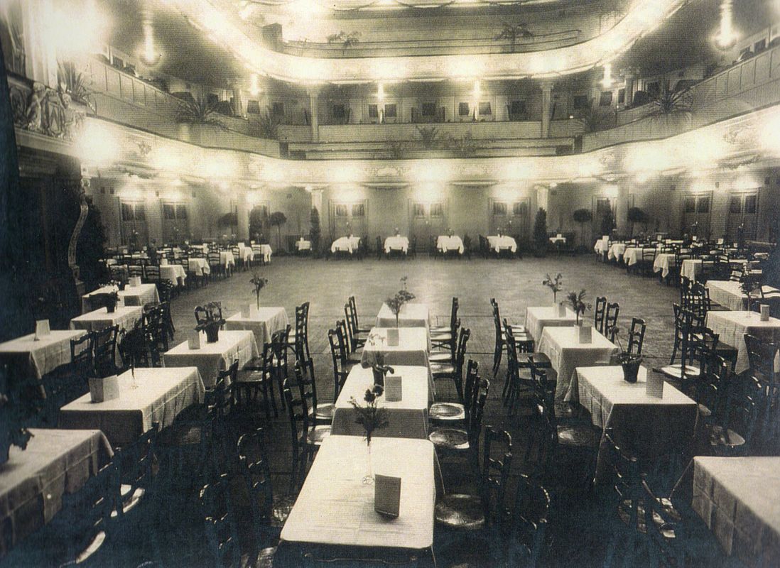 “In gedachten verplaatst men zich van zelf naar die feestavonden als de schouwburg, overstroomd door het elektrisch licht, gevuld met een bont en rijk uitgedost publiek en de lucht trillend van snarenmuziek of gezang als zoovele onontbeerlijke faktoren de rijke zaal tot zijn volle recht laten komen." ~ Het Kortrijksche Volk – 3-10-1920
