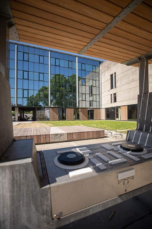 Maar met 5 concertzalen, 38 leslokalen, 9 bureauruimtes, 3 repetitieruimtes, één opnamestudio en 2 radiostudio's is Muziekcentrum Track veel meer dan dat. Track behoort immers tot de grootste muziekcentra van Vlaanderen.