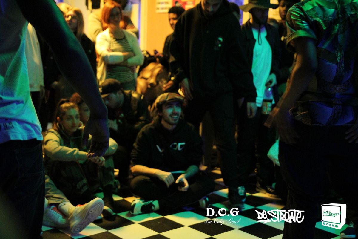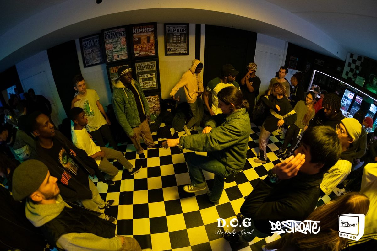 The host is Boyindombe Lokassa Rodie, a dancer from the popping scene, one of the remarkable styles that have emerged within hip-hop culture. Rodie is also a funk DJ and is internationally known in the hip-hop underground. He is a member of the collective Root Division and organizes battles himself, including this Sharp Shooter Battle.