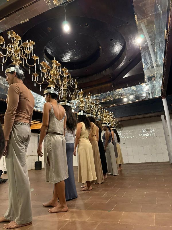 Een dans die de tradities van het oude Egypte combineert met de elegantie van buikdans, dat is de shamdan-dans. Met een indrukwekkende kandelaar op het hoofd brengen negen vrouwen deze traditie tot leven in een adembenemende choreografie van herhaling, energie en verzet. Synchroon bewegend door de ruimte verlichten ze een Egyptische geschiedenis van kolonisatie en macht. De danseressen dragen niet enkel een kandelaar op het hoofd maar ook het gewicht van hun geschiedenis en van alle iconische danseressen voor hen.