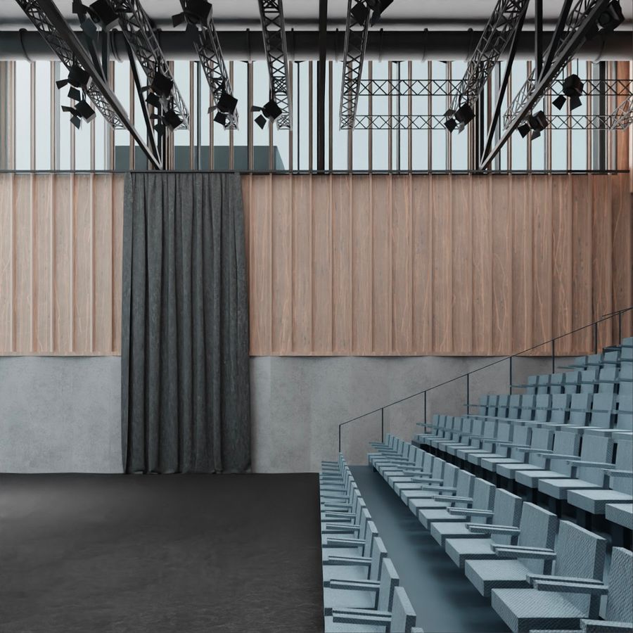 De nieuwe theaterzaal is ook zichtbaar vanop het Schouwburgplein en wordt een echte eyecatcher. Dat is ook de bedoeling. Het markeert zelfbewust het nieuwe kloppend hart van de site: hier ligt de nieuwe entree met cultuurcafé en foyer, hier is het ‘te doen’. De nieuwe zaal zal plaats bieden aan 200 bezoekers en heeft een uitschuifbare tribune. De zaal kan volledig verduisterd worden, maar er is ook de mogelijkheid om zijdelings daglicht binnen te laten vallen. Zo kan deze nieuwe zaal heel flexibel ingezet worden. Minder zichtbaar op deze beelden is de aandacht voor integrale toegankelijkheid van de site. In nauwe samenwerking met Inter zorgen we ervoor dat het volledige complex toegankelijk is voor iedereen. Zo kan iedereen zelfstandig, veilig en comfortabel cultuur beleven.