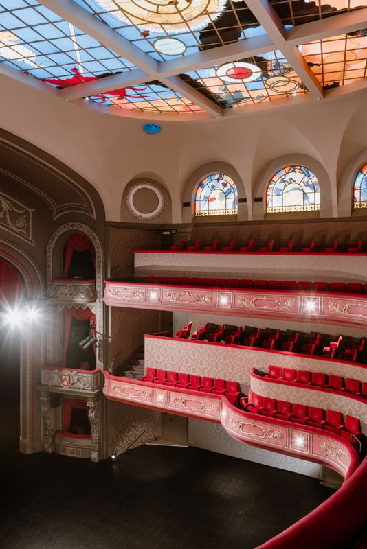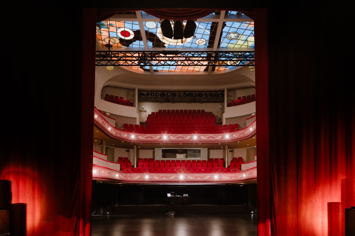 De metamorfose naar een balzaal met een volledig vlakke vloer heeft niet alleen als voordeel dat we onze bezoekers volledig coronaproof en per bubbel kunnen plaatsen rekening houdend met de steeds veranderende maatregelen. Het laat ons tevens ook toe om verschillende settings op te stellen afhankelijk van het soort voorstelling. Bovendien biedt de ruimte en het interieur ook plaats om diverse en andere voorstellingen/performances te programmeren.