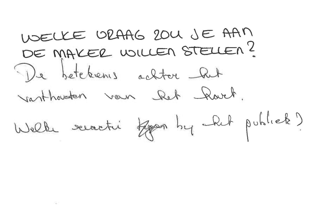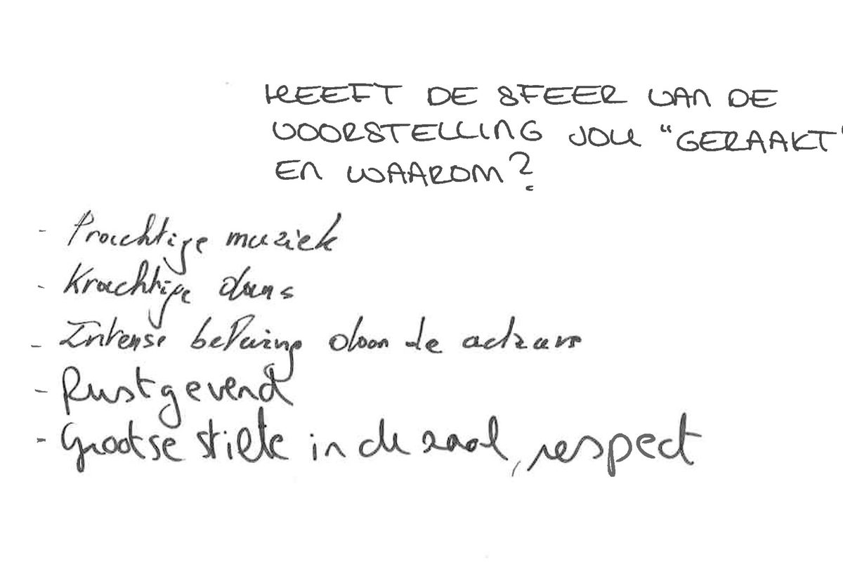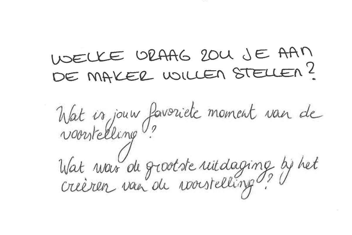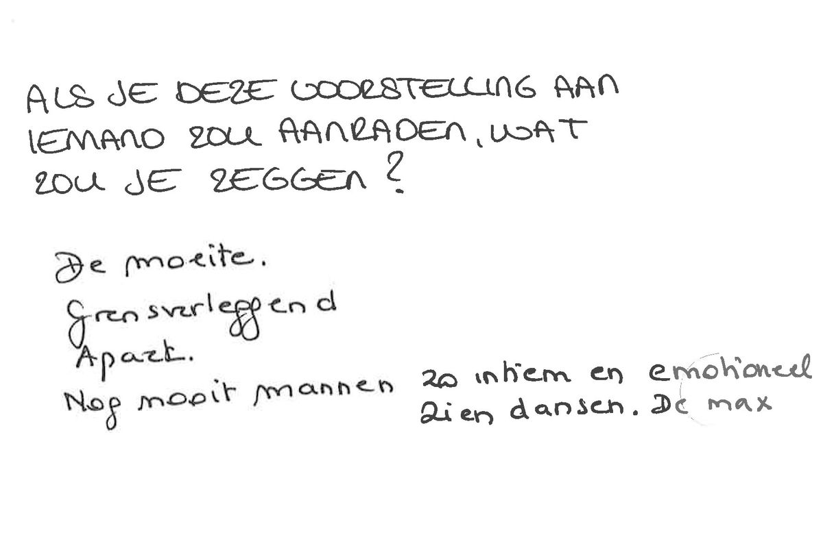 "De moeite. Grensverleggend. Apart. Nog nooit mannen zo intiem en emotioneel zien dansen. De max!" - Welke vraag zou je aan de maker willen stellen?