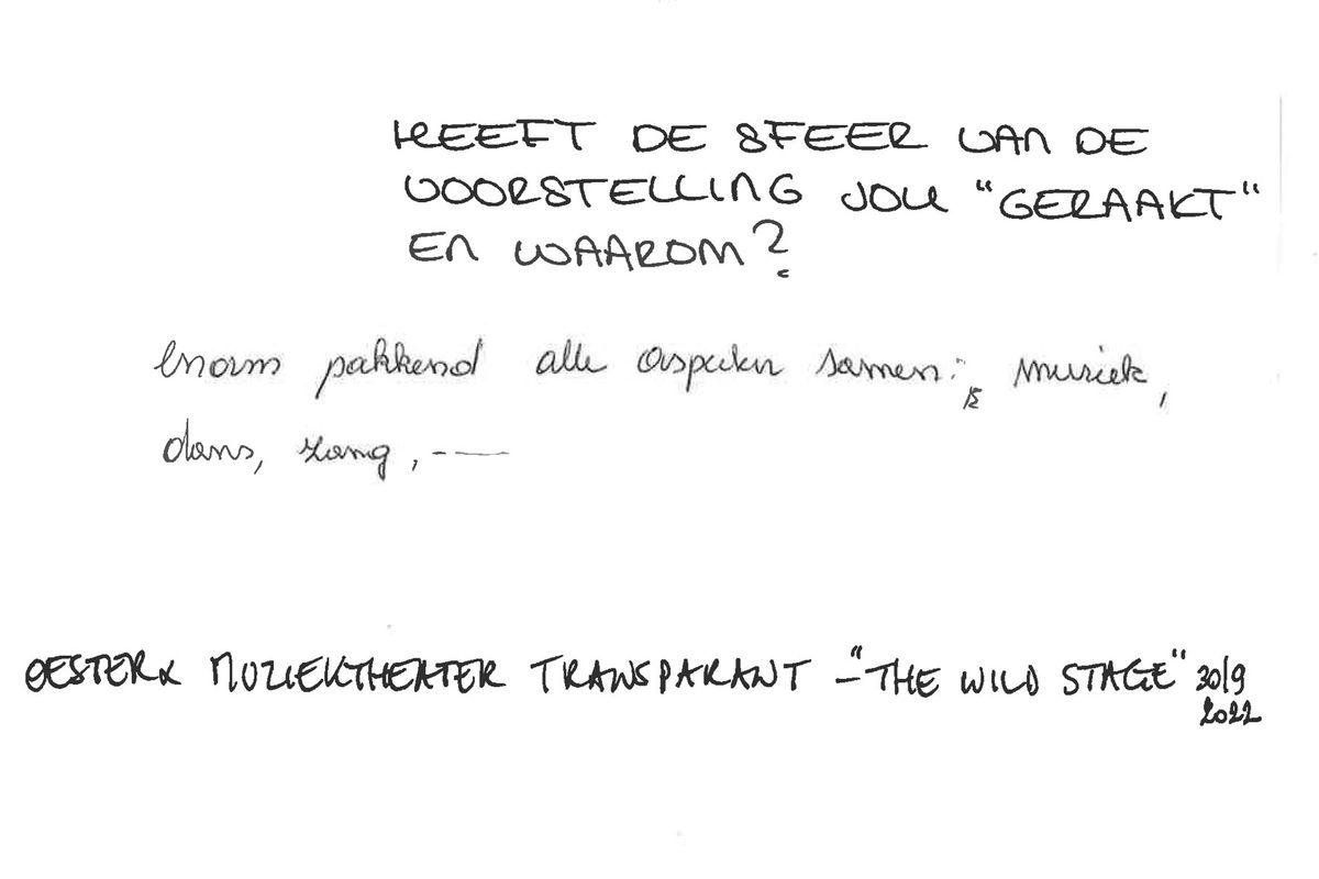 Na de voorstelling 'The Wild Stage' van oester & Muziektheater Transparant zochten heel wat mensen opnieuw onze reactiewall op om er hun mening over de voorstelling neer te pennen.