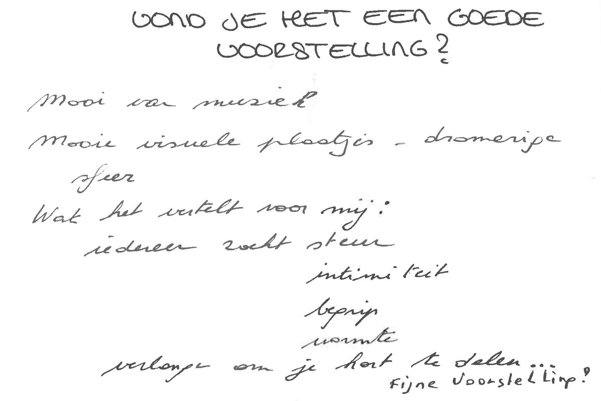 "Knuffelig" - Als je deze voorstelling aan iemand zou aanraden, wat zou je zeggen